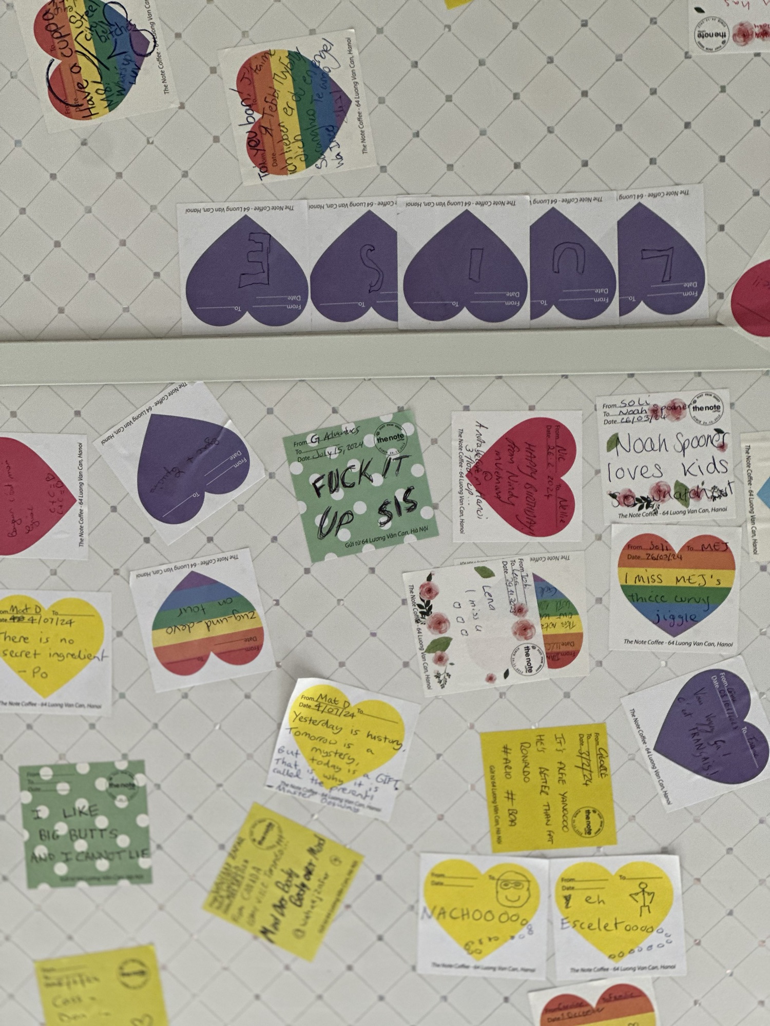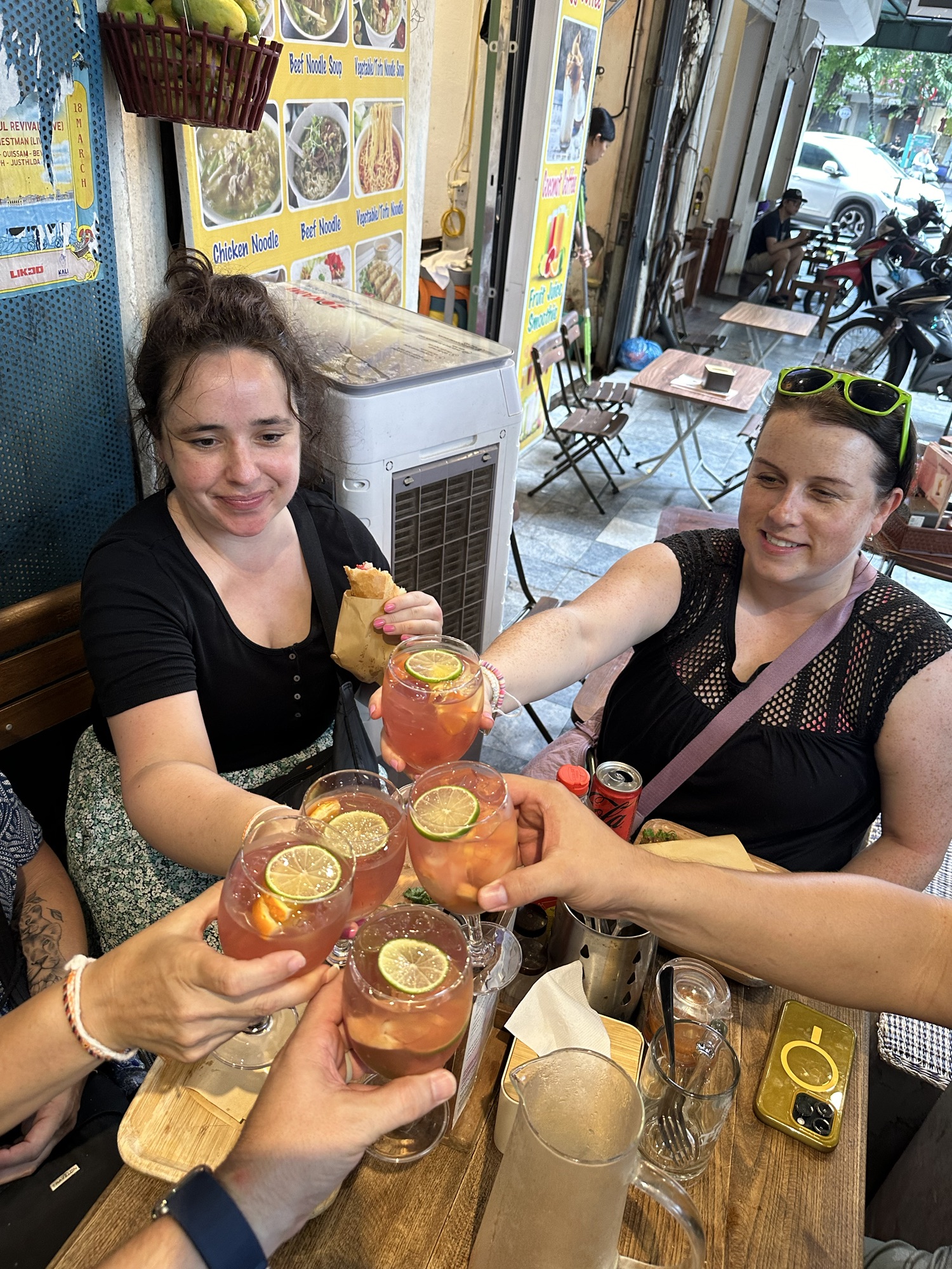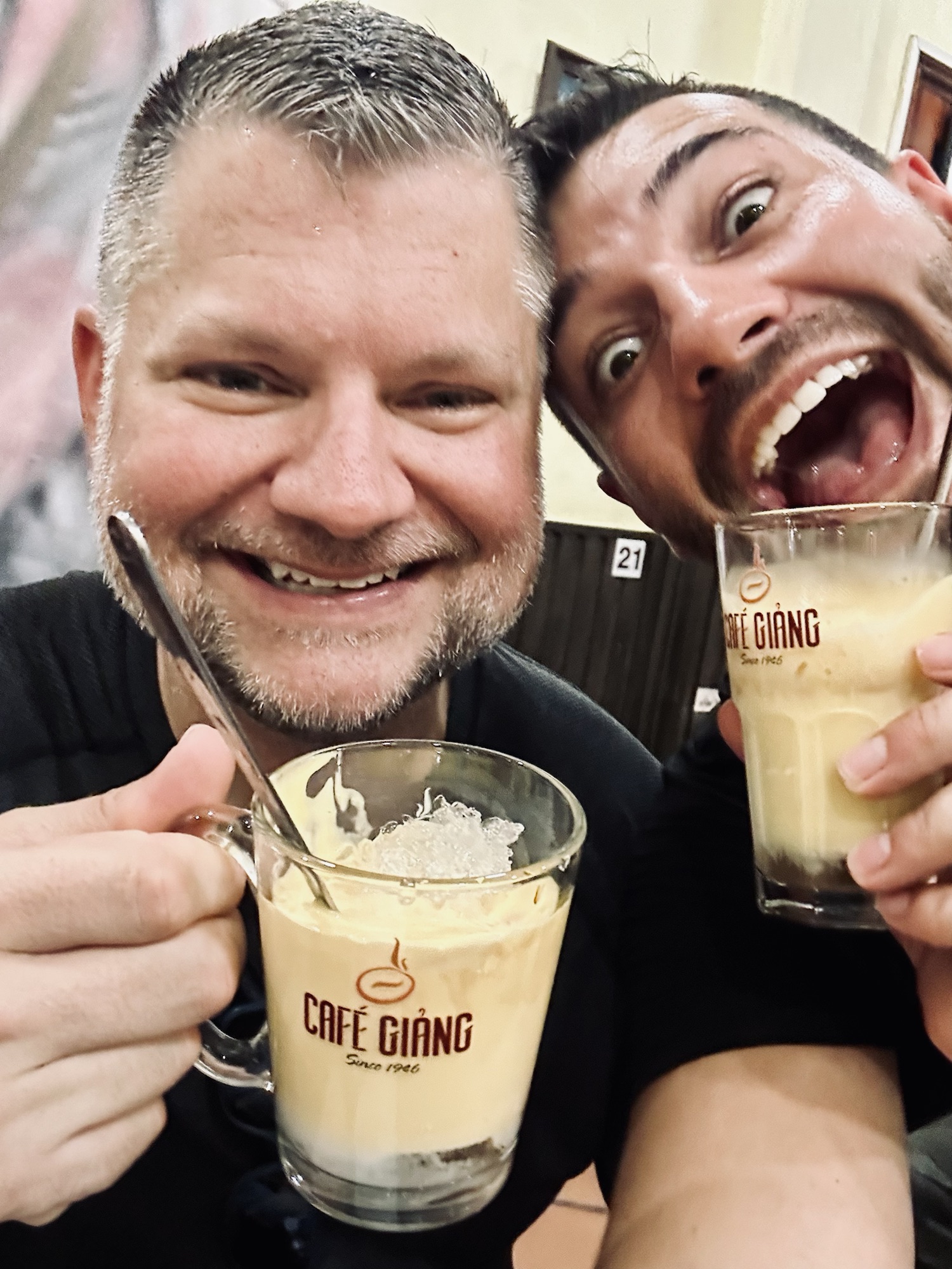 Hungry after the tour, we headed to Banh Mi 25, a famous spot recommended by Dee and Orlaith from our group. It did not disappoint—the bread was amazing, and everyone loved it so much some went for seconds. Next, we visited The Note coffee shop, a four-story cafe covered in post-it notes. We enjoyed refreshing lemonade and passion fruit juice while leaving messages for future visitors. Then, we tried egg coffee, which was invented in Hanoi in 1946. Andrew wanted to visit The Giang Cafe, the shop named after egg coffee’s inventor. Both the egg coffee and egg coconut coffee were delicious (check back later when we learn how it’s made!).