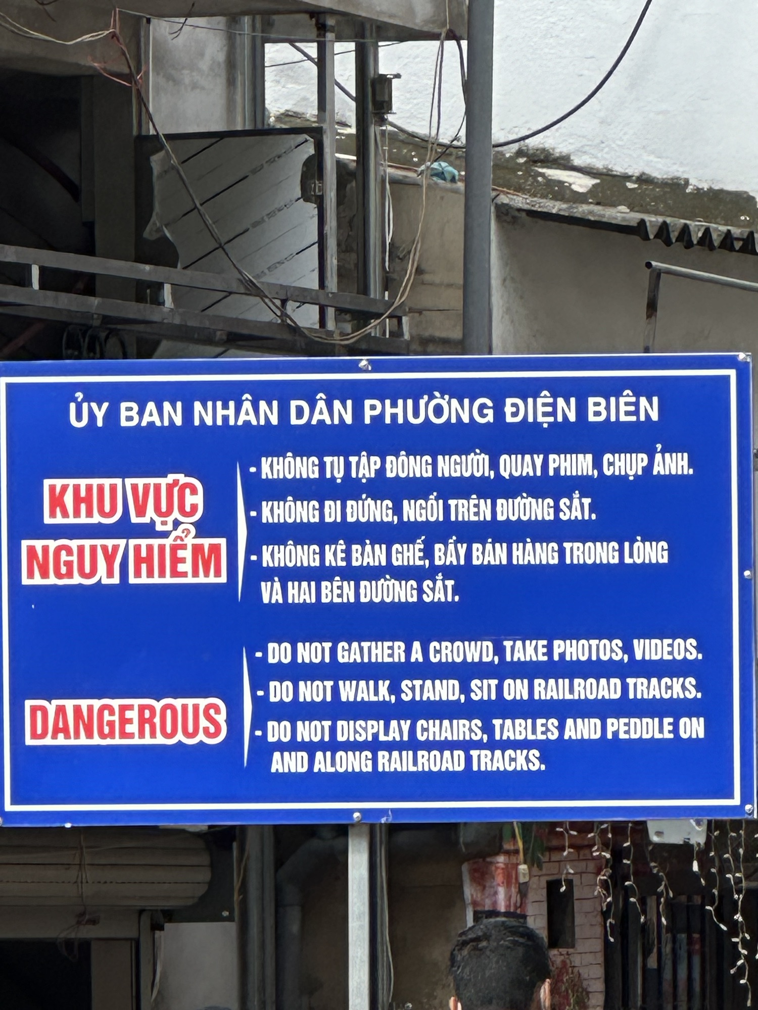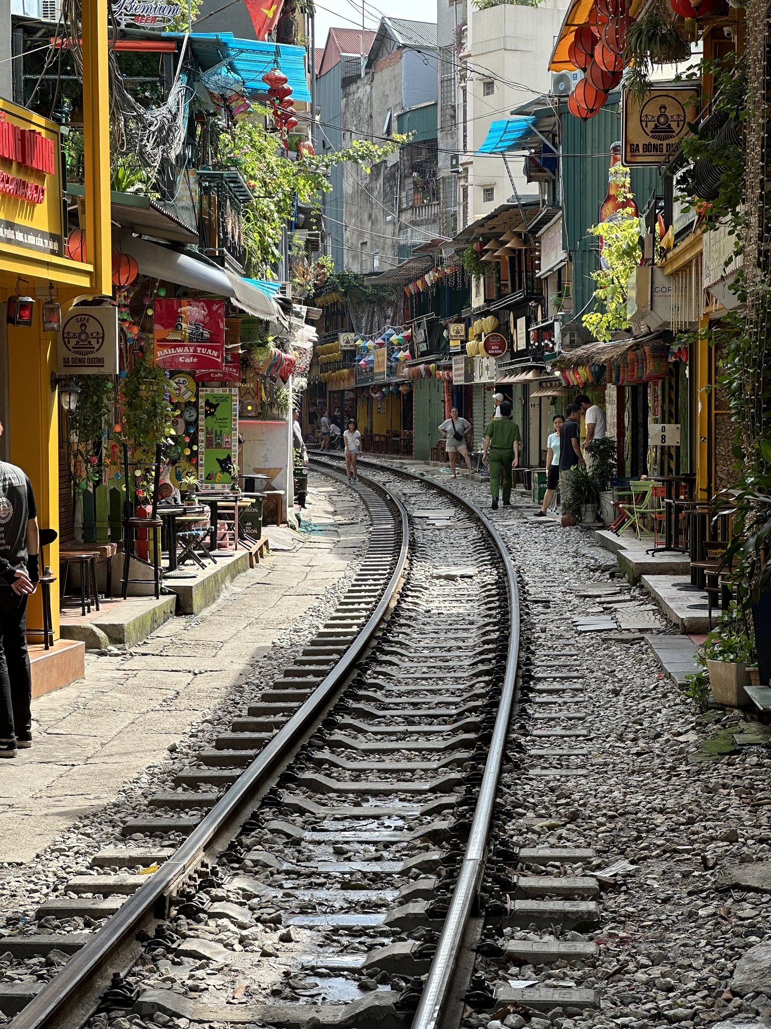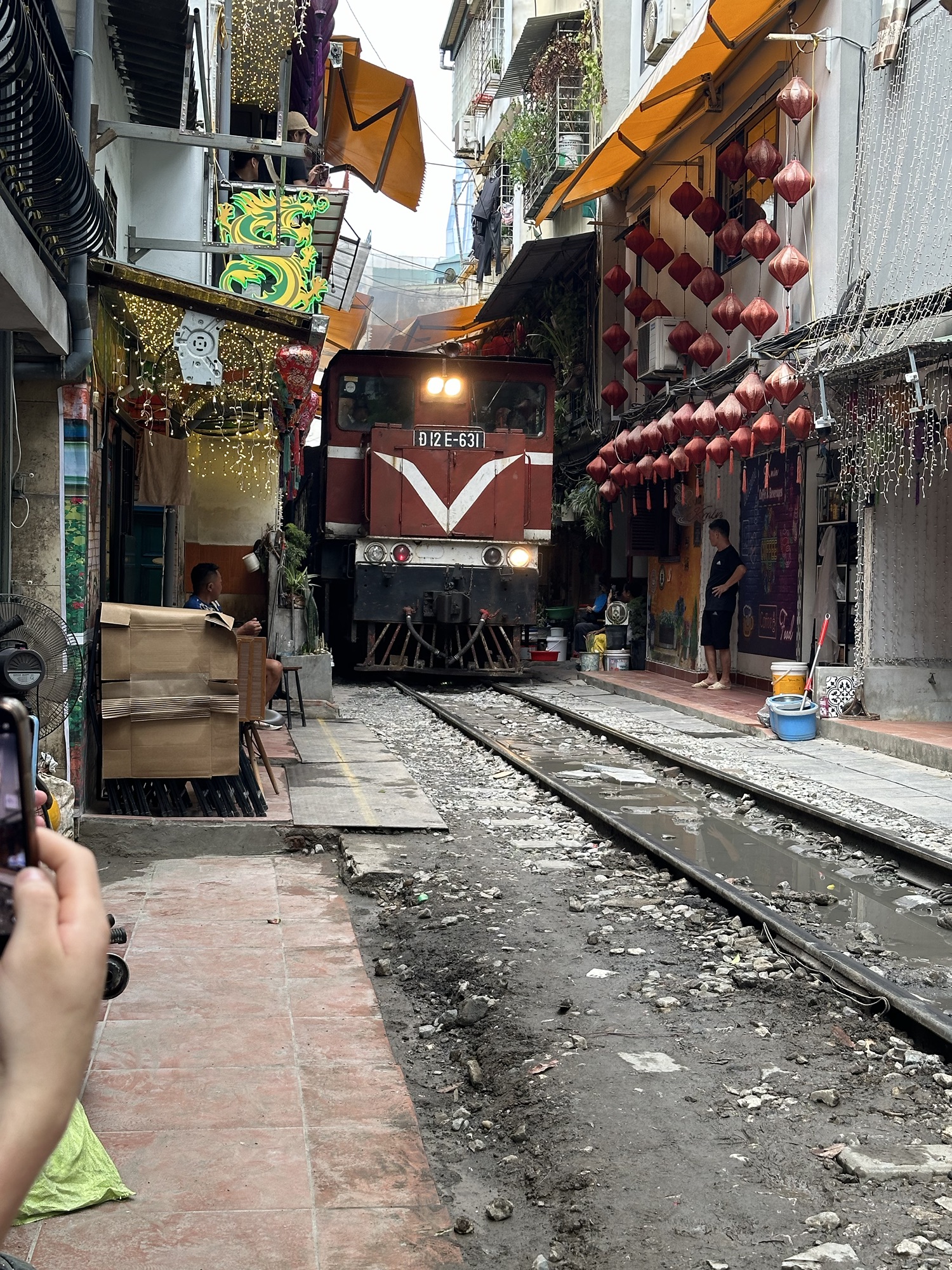 While Kenny continued the tour, sharing details about Hanoi, Joanne, a group member, noticed we were near the famous Train Street. Kenny led us to a shop for a rest and cold drink while waiting for the next train. It was quite a sight!