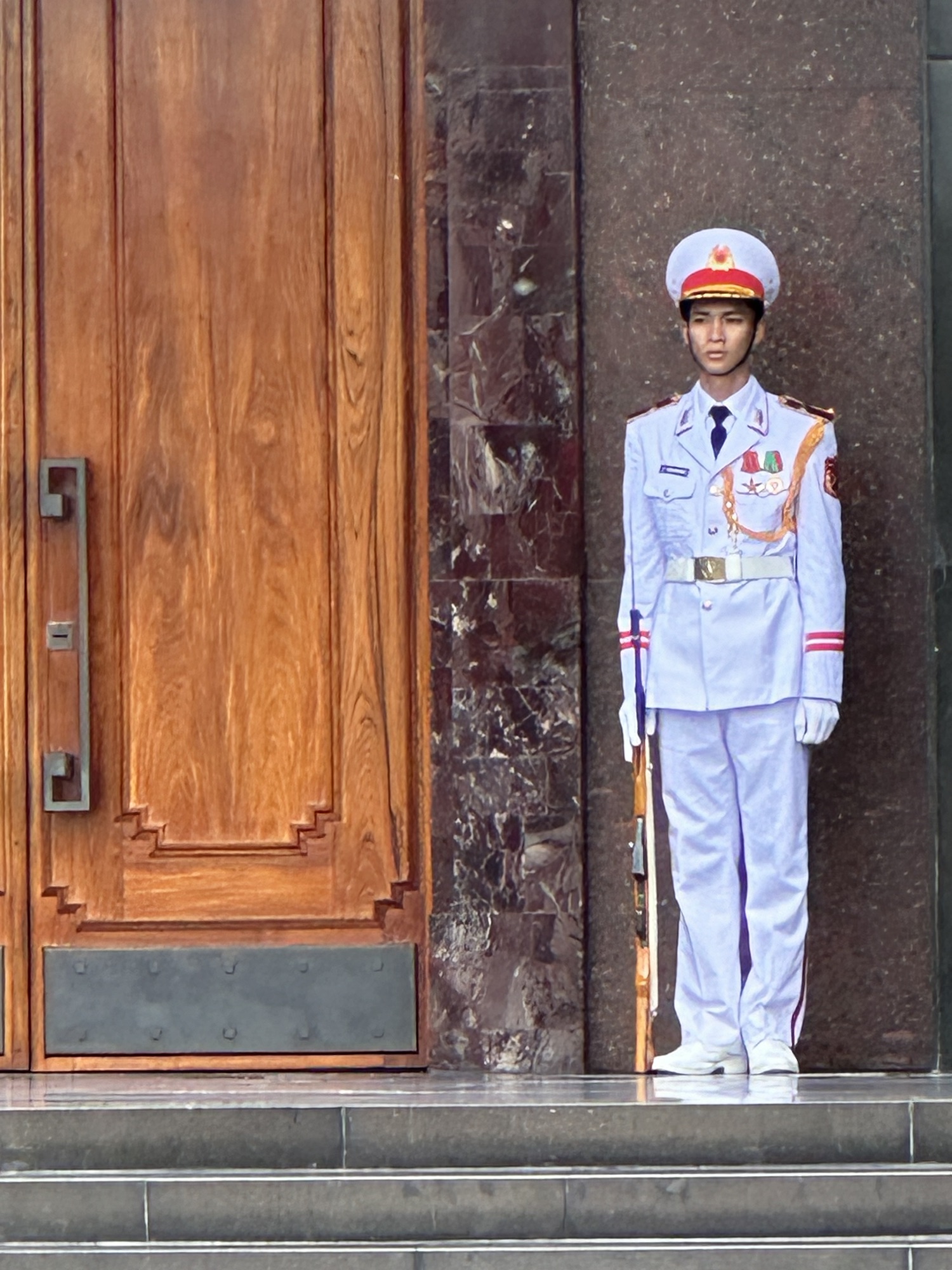 Continuing the tour, Kenny shared the life and history of Ho Chi Minh, the first President of the Democratic Republic of Vietnam and founder of the Communist Party of Vietnam, and the influence the Soviet Union had on him. Having visited Russia twice, once in 1993 just after the fall of the Soviet Union, I found it fascinating to see so many communist symbols still prevalent in Hanoi. We then visited Ho Chi Minh’s Mausoleum, though we could only see the outside as it was under maintenance. I got to see Lenin’s body in his mausoleum in Moscow, so was disappointed we weren’t able to see HCM’s body. We also toured the Presidential grounds where he spent much of his time.