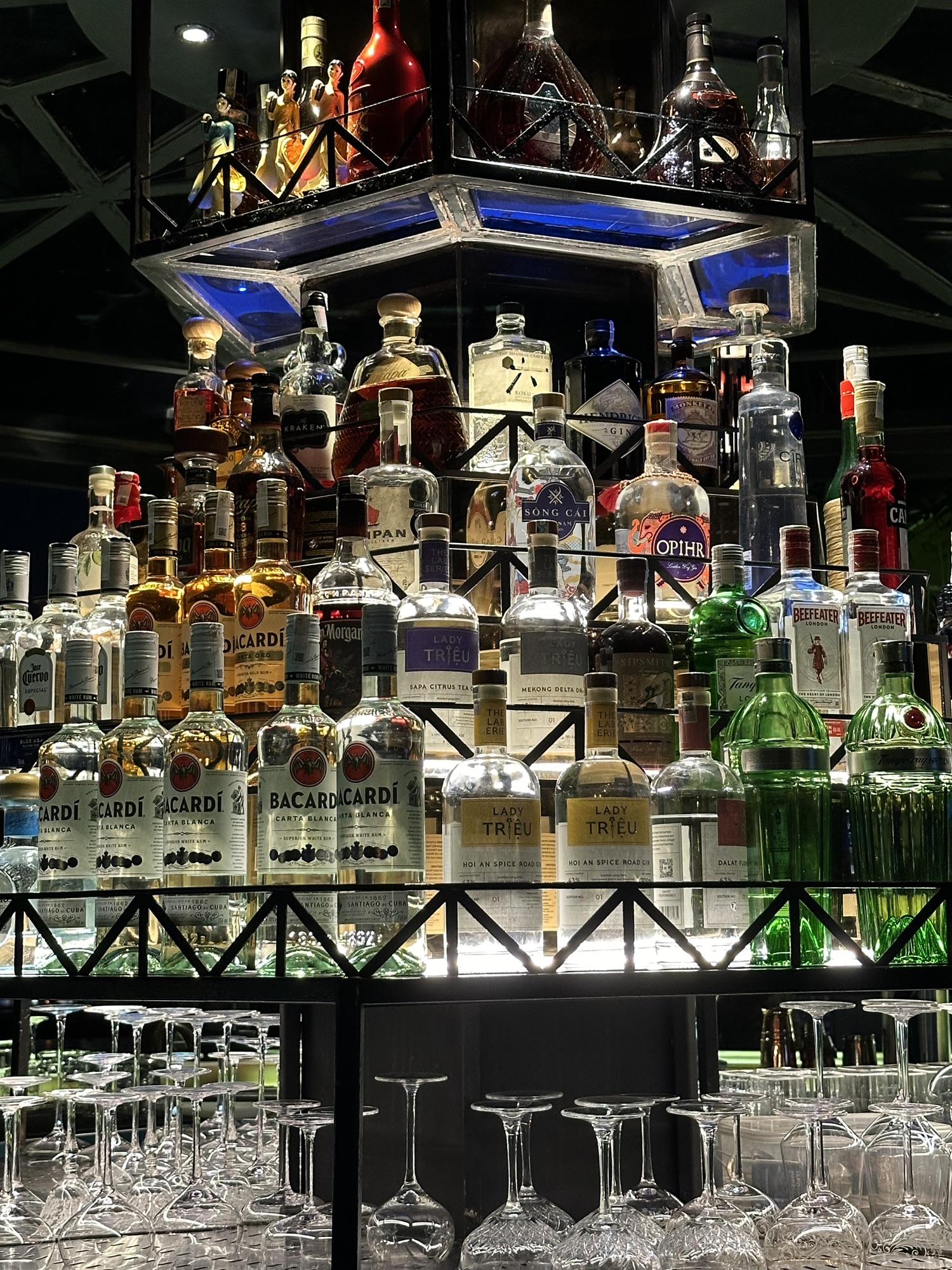 Puna teaches us some Vietnamese phrases daily. Tonight, she taught us “oi gioi oi,” which means “oh my Buddha,” frequently used instead of “oh my God.” To celebrate Dee and Orlaith’s departure, we visited Moonlight Sky Bar, a beautifully designed rooftop bar with the best craft cocktails we’ve had on the trip. We tried 4 of the 5 drinks on their concept menu, with Andrew planning to recreate them at home. Exhausted after our 16-hour day, we took Grabs back to the hotel, and collected our laundry arranged by Puna. We paid 80,000 Vietnam Dong (~$3) per kilogram, a fraction of the hotel price (each pair of shorts or t-shirt with the hotel laundry was $2). Andrew wanted a shoulder bag, so we headed back to the Old Quarter to search for it. Despite finding two, they were dirt-stained and smaller than expected, so we abandoned the idea and headed to bed by 12:30 a.m., ready for another early start to Ha Long Bay.