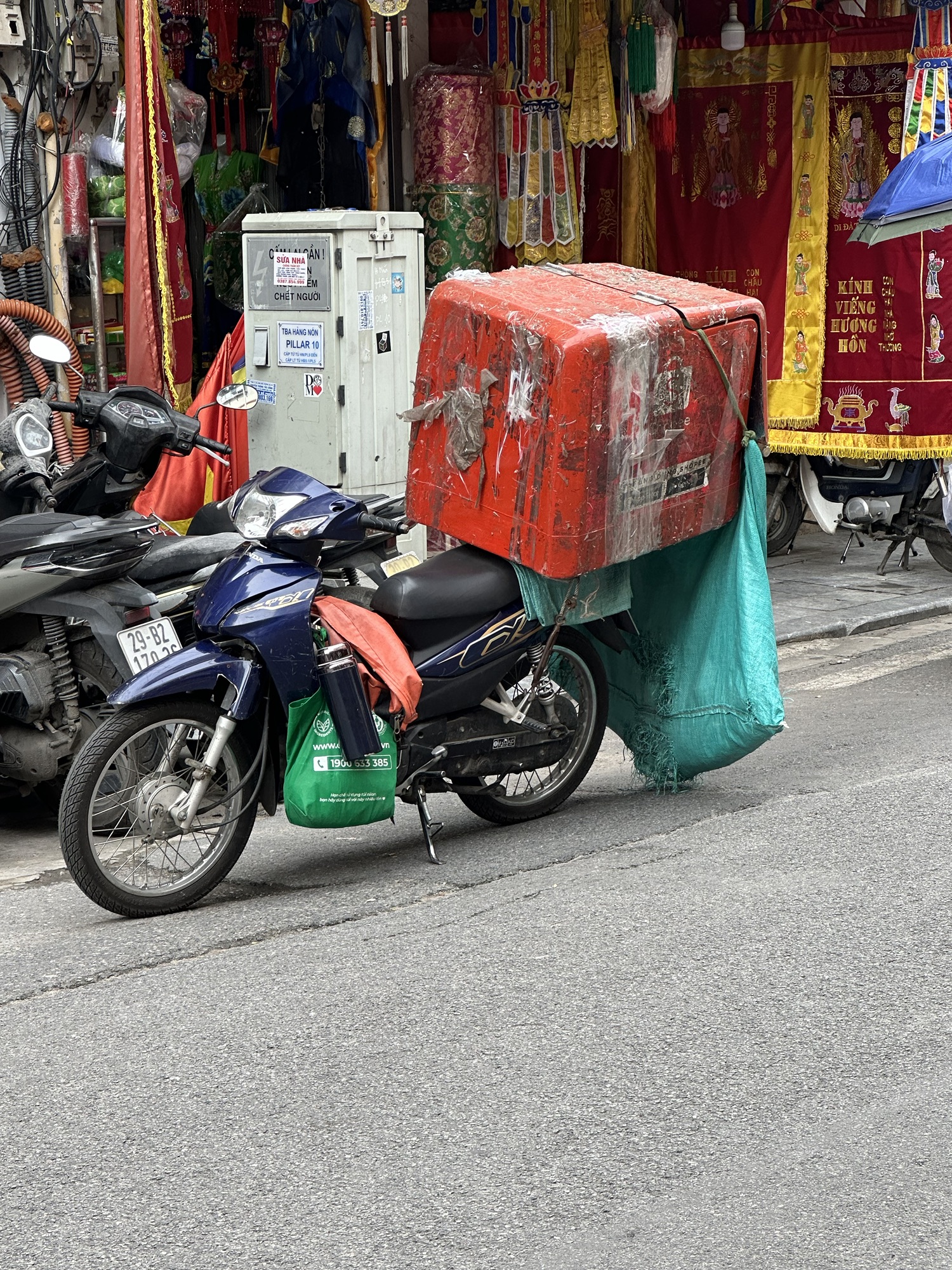Motorbikes in Hanoi transport almost anything, which led us to play a game of spotting the most unusual items, by description, item, or size. I started a photo collection called “motorbikes carrying _______.”