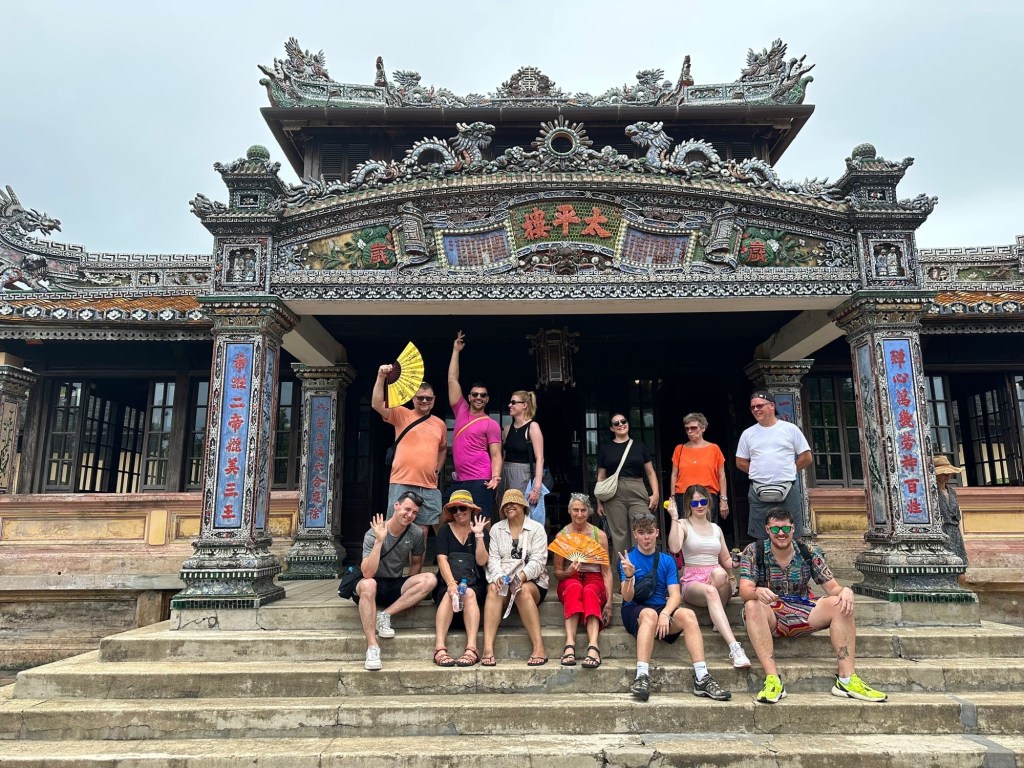 After concluding our motorbike tour, we returned to the hotel for much-needed showers and a brief rest before dinner with the group. We dined at a local restaurant, sampling Huế’s unique cuisine. The evening ended with drinks at a bar called Brown Eyes, where every worker greeted us with a free shot. We weren’t in the mood for heavy drinking, so after two cocktails, we bid the group goodbye and headed back to the hotel for some sleep.