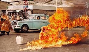 Phuong recounted the story of a famous photo many of us had seen (above) — the self-immolation of Buddhist monk Thích Quảng Đức. Famously captured by Associated Press photographer Malcolm Browne, the act was meant to draw attention to the Buddhist teachings threatened by then-President Diem, part of the Catholic minority. The President was pushing policies that favored Catholics and provided them with ammunition and other favors, not Buddhists. Phuong told us this story because the car in the background of the photo is kept at this historical site. The only restoration done to it was a fresh coat of blue paint applied by the Buddhists many years later. Photos on the wall of the car’s garage show a fellow monk holding a charred black heart, the only part of Quảng Đức that remained after his self-immolation. Sadly, many more followed in his path throughout Vietnam and the world; the latest was in February in Washington D.C. by a serviceman protesting the genocide in Palestine.