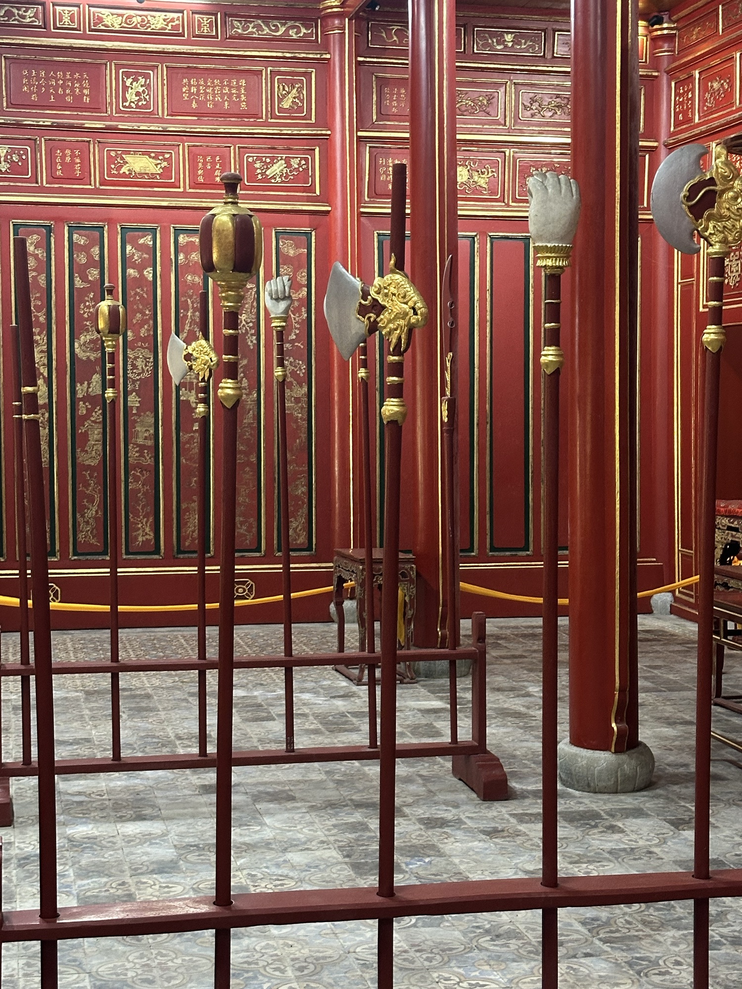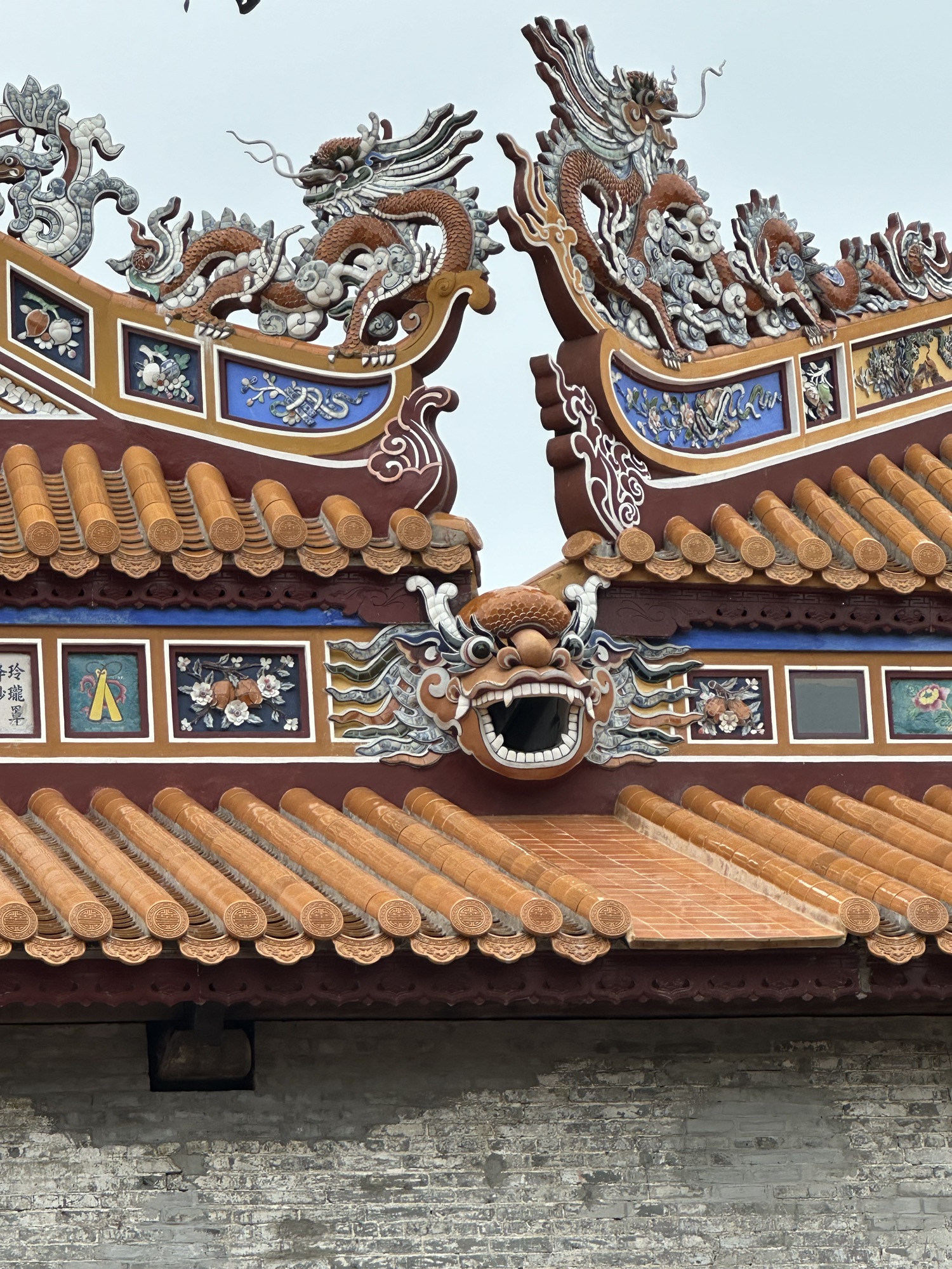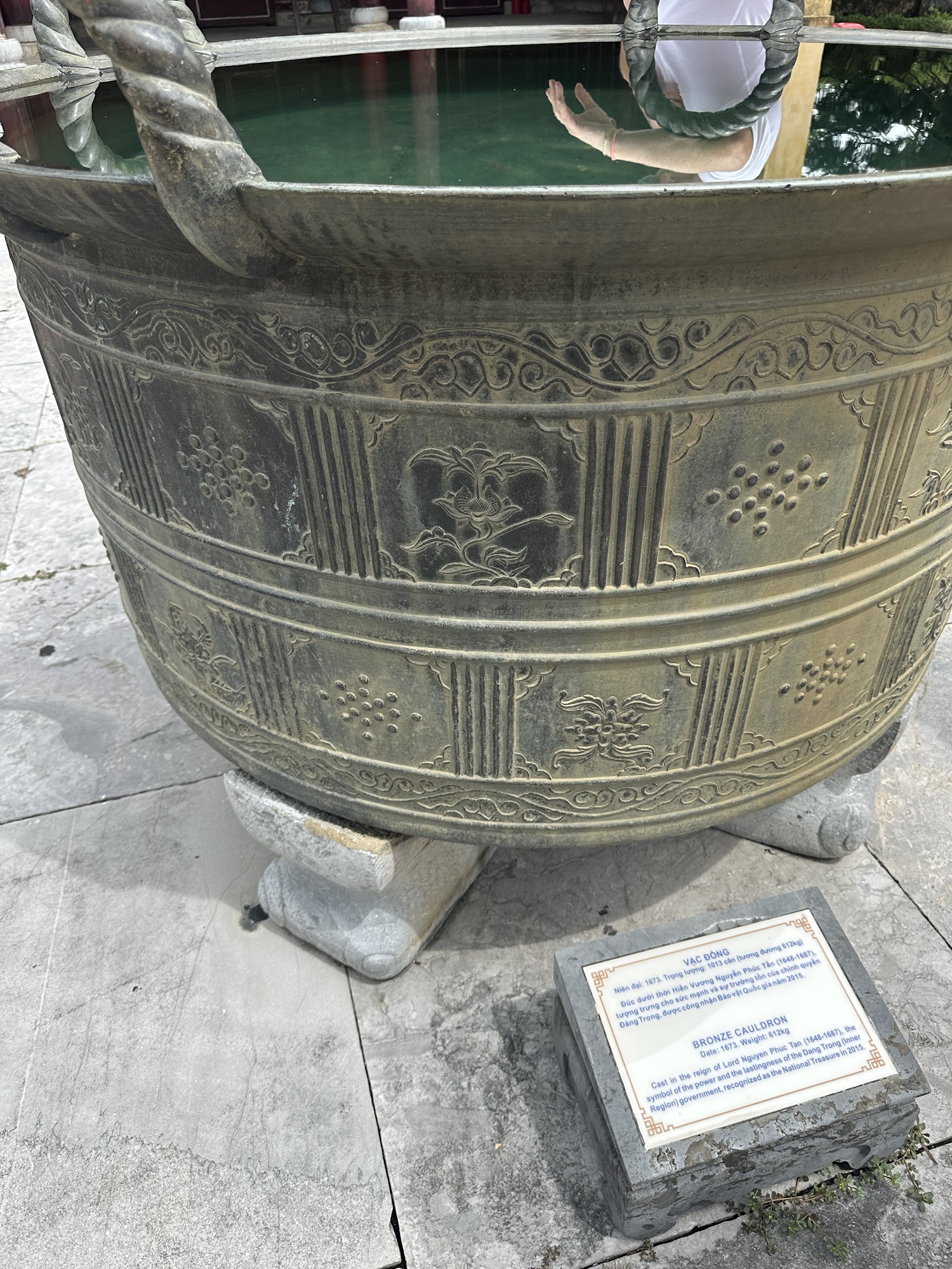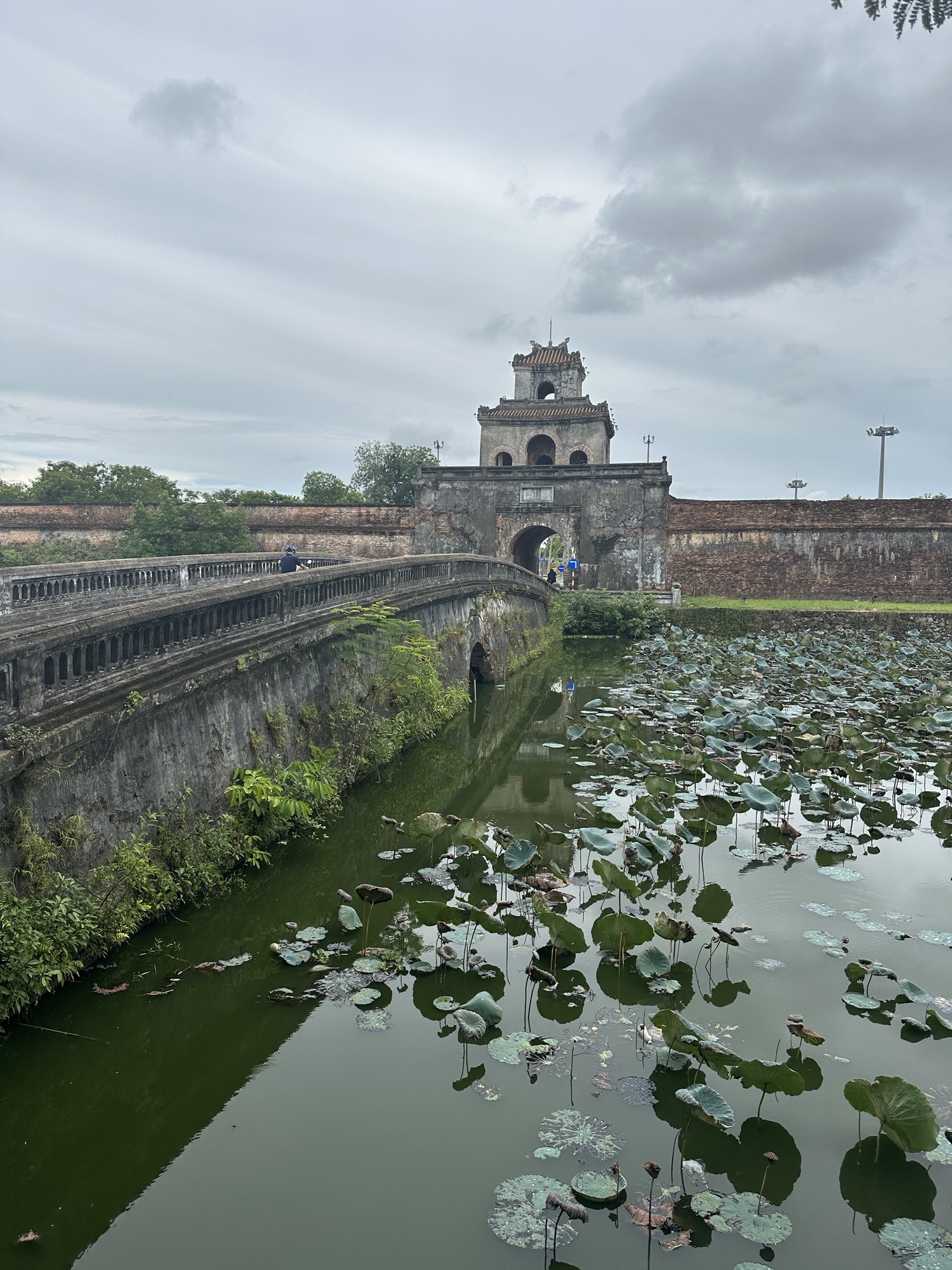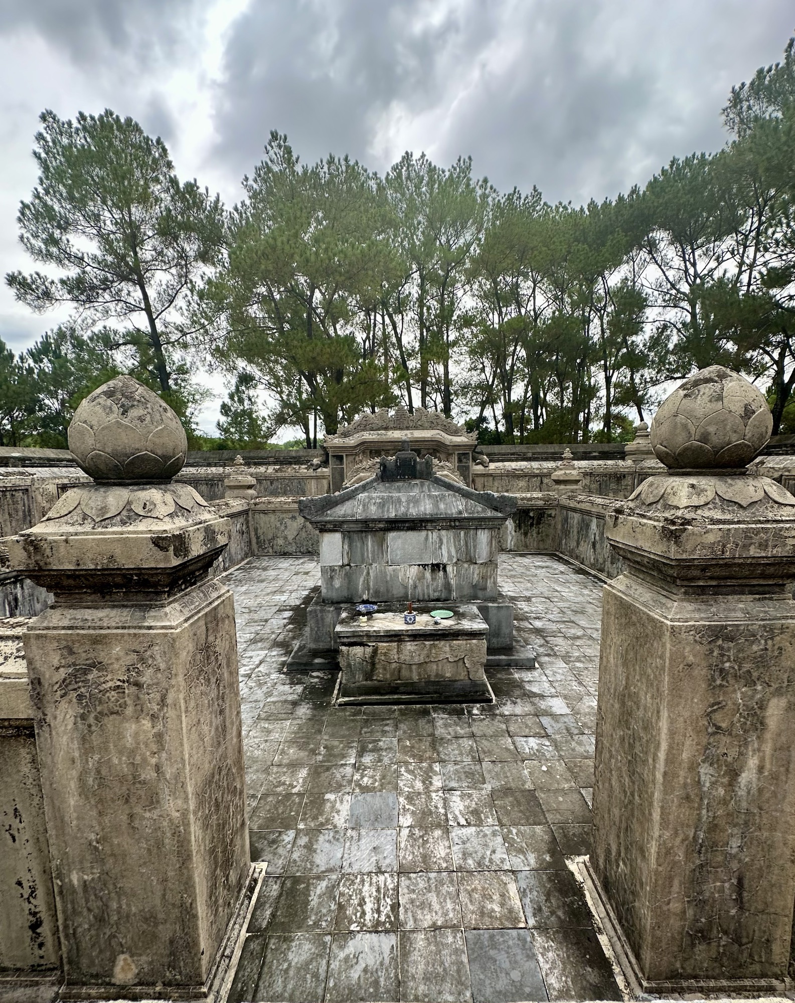 Calling this a highlight of Huế is an understatement—it might be one of the best experiences we’ve had since the trip began. Phuong navigated Huế traffic with ease, eliciting lots of “yeehaws” and laughter. Our first stop was Hổ Quyền, the tiger arena. Often overlooked by visitors due to its off-the-beaten-path location, it was well worth the visit. Phuong recounted the history of the arena, where elephants and tigers battled for the emperor’s entertainment. From the late 1700s until the last fight in 1904, over 300 elephants and tigers faced off. The original purpose was to enhance the elephants’ fighting capabilities for war. We explored the walled arena and the waiting grounds, where the tigers left visible claw marks in the stone walls. Today, the arena sits abandoned, protected by UNESCO, while village children play soccer outside its walls. To read more about the tiger arena, click here.