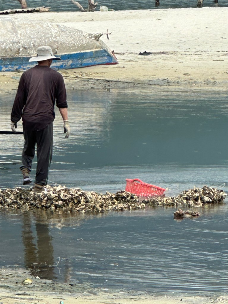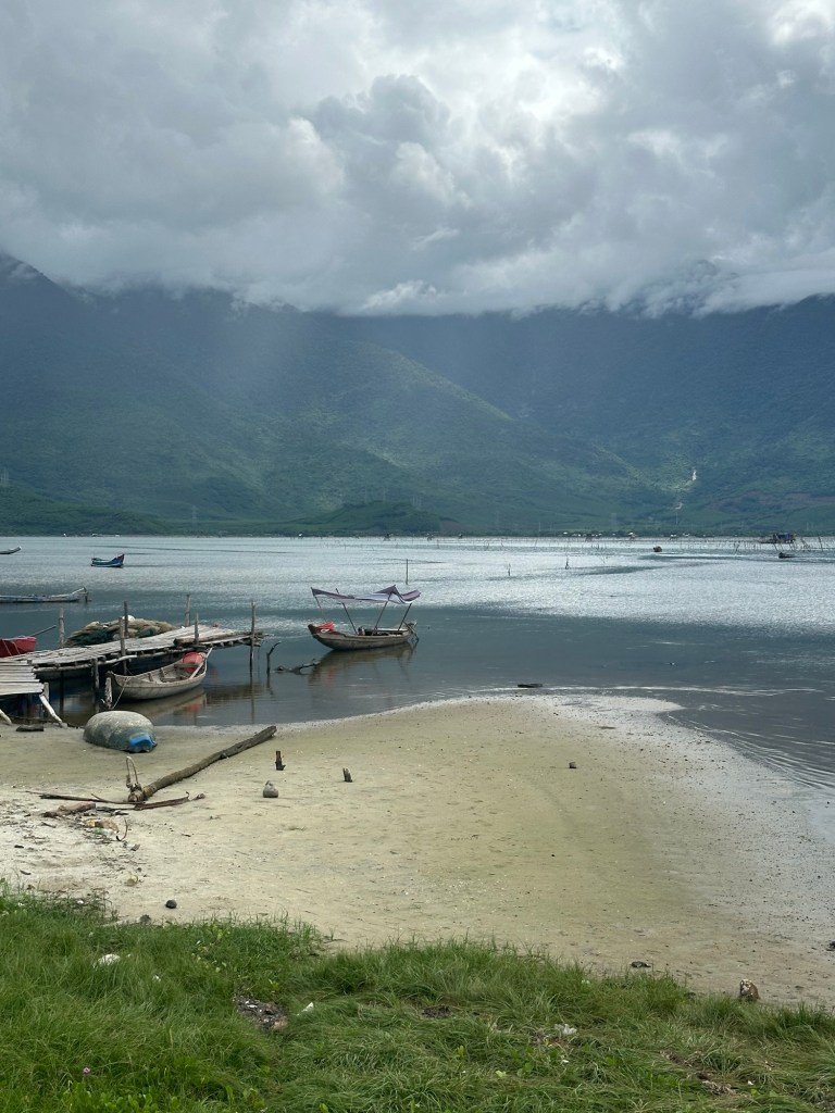 Back on the bus, we made one last impromptu stop at the bay in Phu Loc. The morning sun was breaking through the clouds, cascading beautifully over the waters rich with mussels and oysters. This is one of the highest-producing regions in Vietnam for these delectable treats, with farming happening twice a year thanks to the perfect water temperatures. Some in the group slurped down a few oysters for a quick lunch while Jeff and I ended up with an iced coconut coffee (shocker) to pair with our very flavorful chicken bánh mì we packed from Hue. Back on the bus for the remaining 90 minutes to Hoi An!