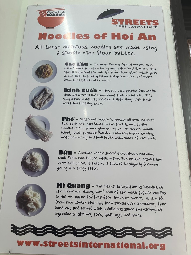 Back at the hotel, Puna and G Adventures had arranged a private noodle cooking class for us at Oodles of Noodles by STREETS. This organization runs a culinary and hospitality school for disadvantaged youth. The comprehensive program includes English classes, life skills, housing, food, clothing, and medical care, preparing graduates for roles in hotels and restaurants throughout Vietnam. Our class was taught by five students who varied in their starting years.