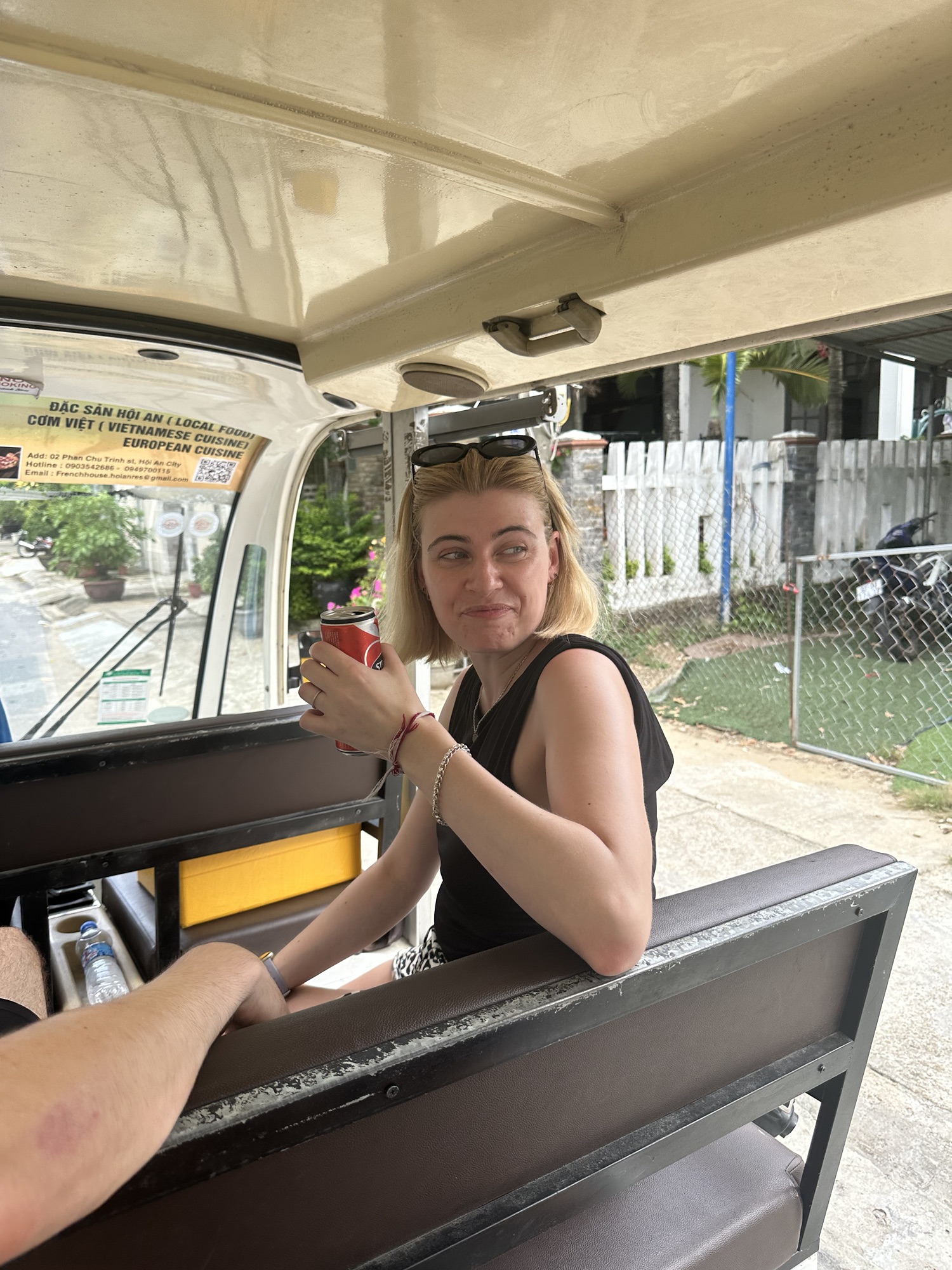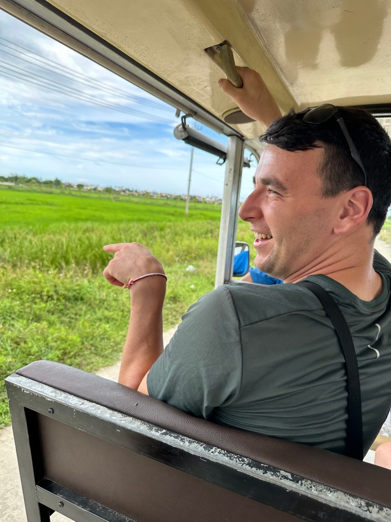 Our next adventure reunited us with Hai, who had bikes ready for us. However, we opted for the electric car ride instead, along with our Irish friends Joanne and Daniel. Puna had also arranged a cooler with canned ciders for us, much to the envy of our biking group (funny video below)