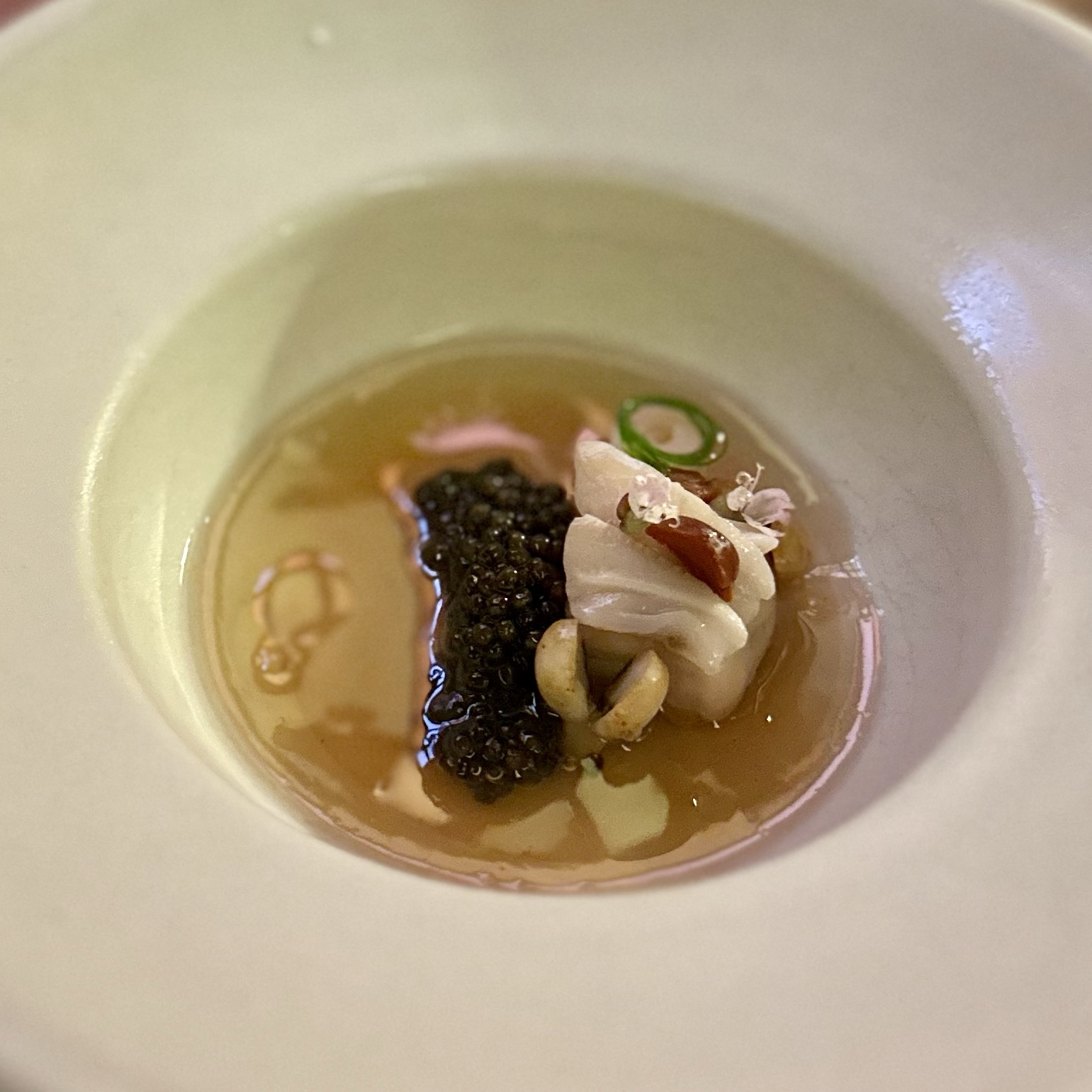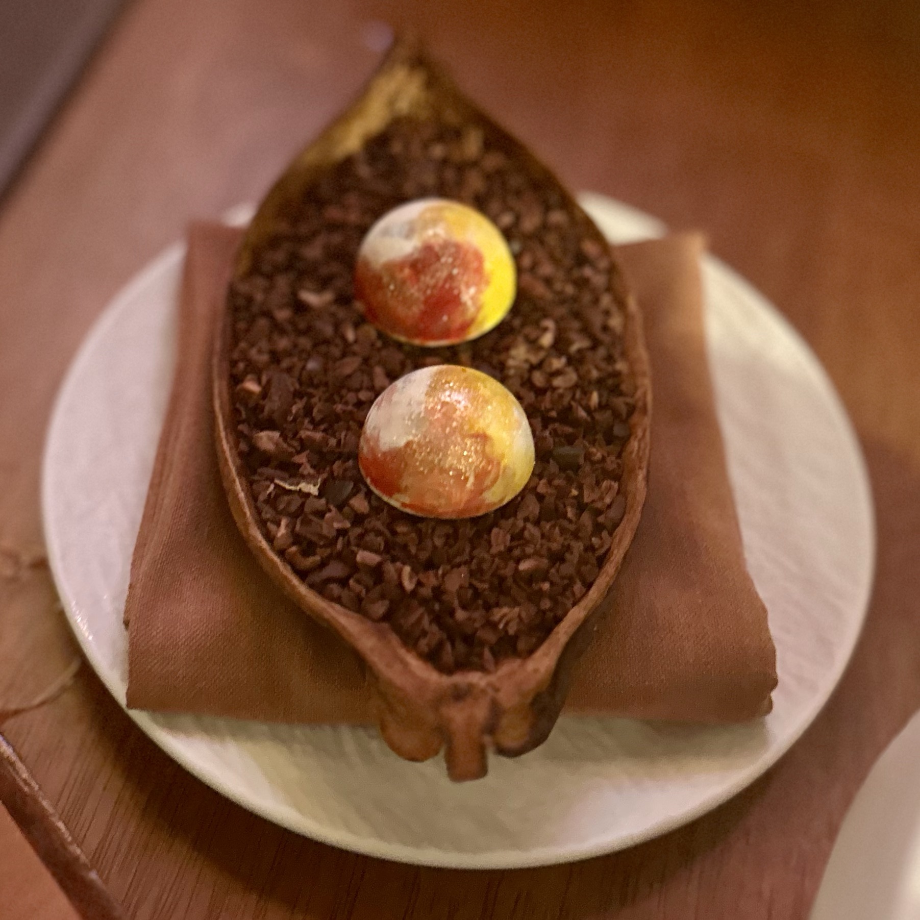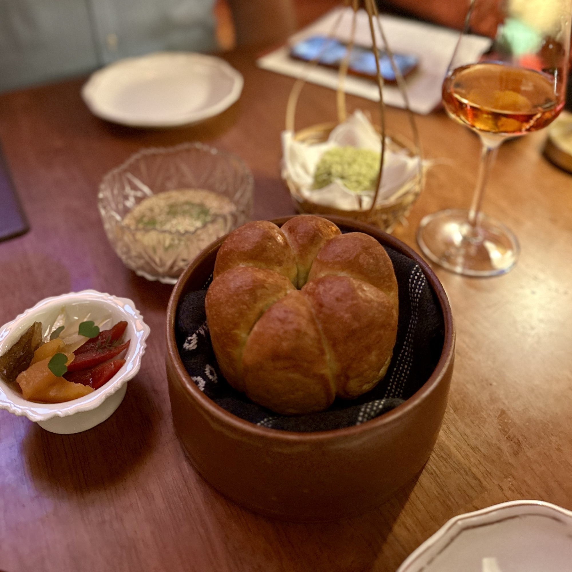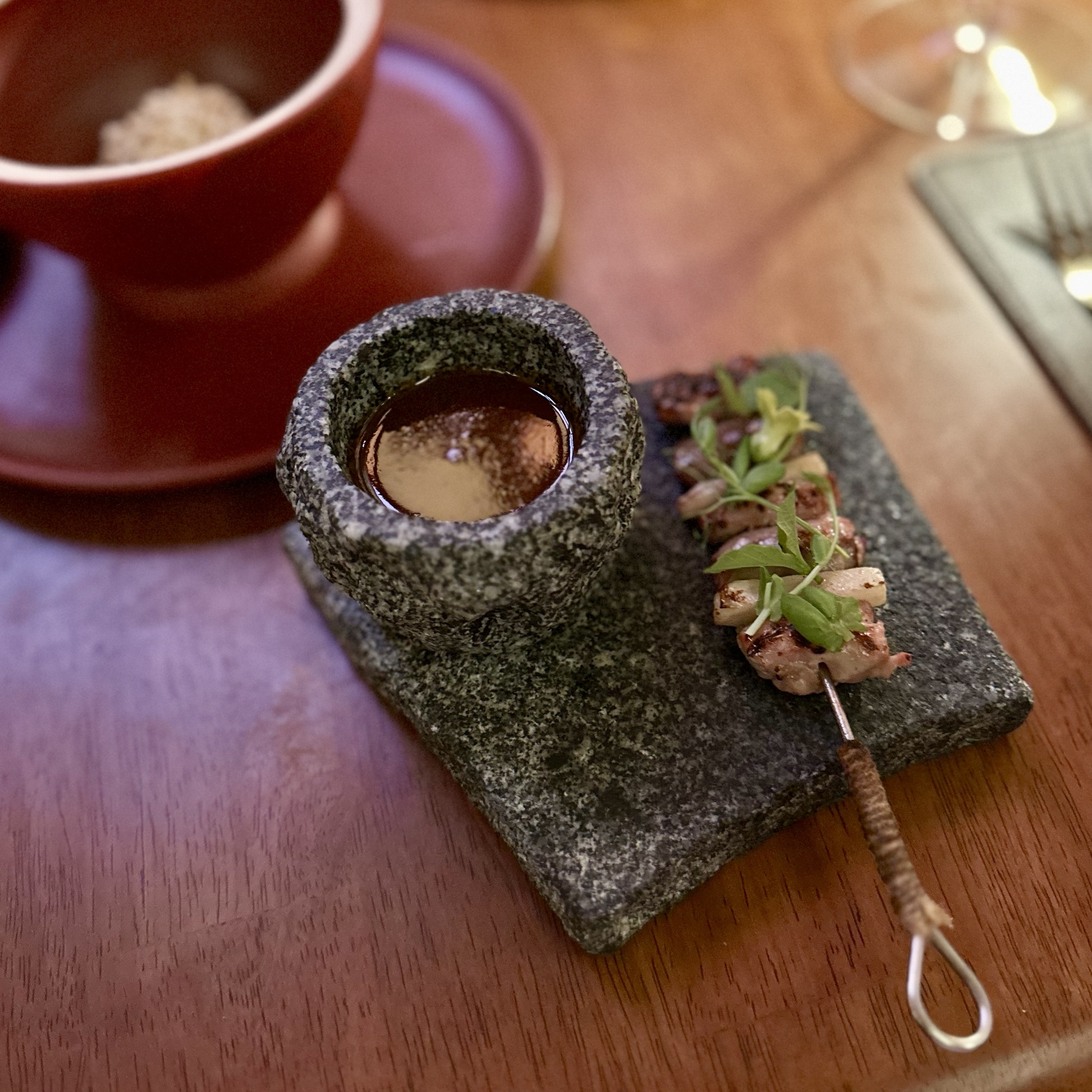 Of the dishes, my top three favorites were the Anatomy of a River Prawn, Tomatoes of Thailand, and the Dong Dang Noodles. River prawns are renowned in Thailand for their huge size and delightful taste. It was amazing to see how Baan Tepa recreated a prawn body using the head as a vessel for a spicy shrimp head sauce, the body as the actual prawn, and the tail as orange crackers with black garlic paste. The Tomatoes of Thailand dish was probably the best tomatoes we’ve ever had. And for me, the Dong Dang Noodles had a perfect chew, great flavor of spice without too much heat, and a delectable salted duck egg that paired incredibly well with the dried squid for flavor and crunch. But to be fair, every single dish at Baan Tepa was mind-blowing in flavor, style, innovation, and taste. The wine/sake pairings were also impeccably done to complement the food—some toned down the spice, others highlighted the herbs, and one balanced the sourness of a dish, making me appreciate the wine more with the dish than without.
