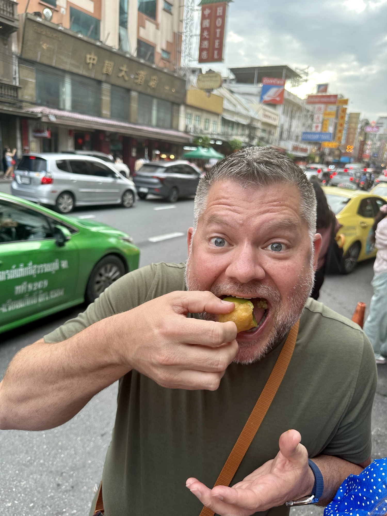 After a 7-hour bus journey spanning Cambodia and Thailand, the Sticky Rice Family has made it back to Bangkok to conclude our amazing tour with G Adventures. But wait, there’s more! Our incredible CEO/tour guide is from Bangkok and wanted to treat us all to one last tour through the streets, experiencing Thai food like locals do. So, after dropping our bags at the hotel in Chinatown, Puna led us into the street market for a fun and flavorful journey.