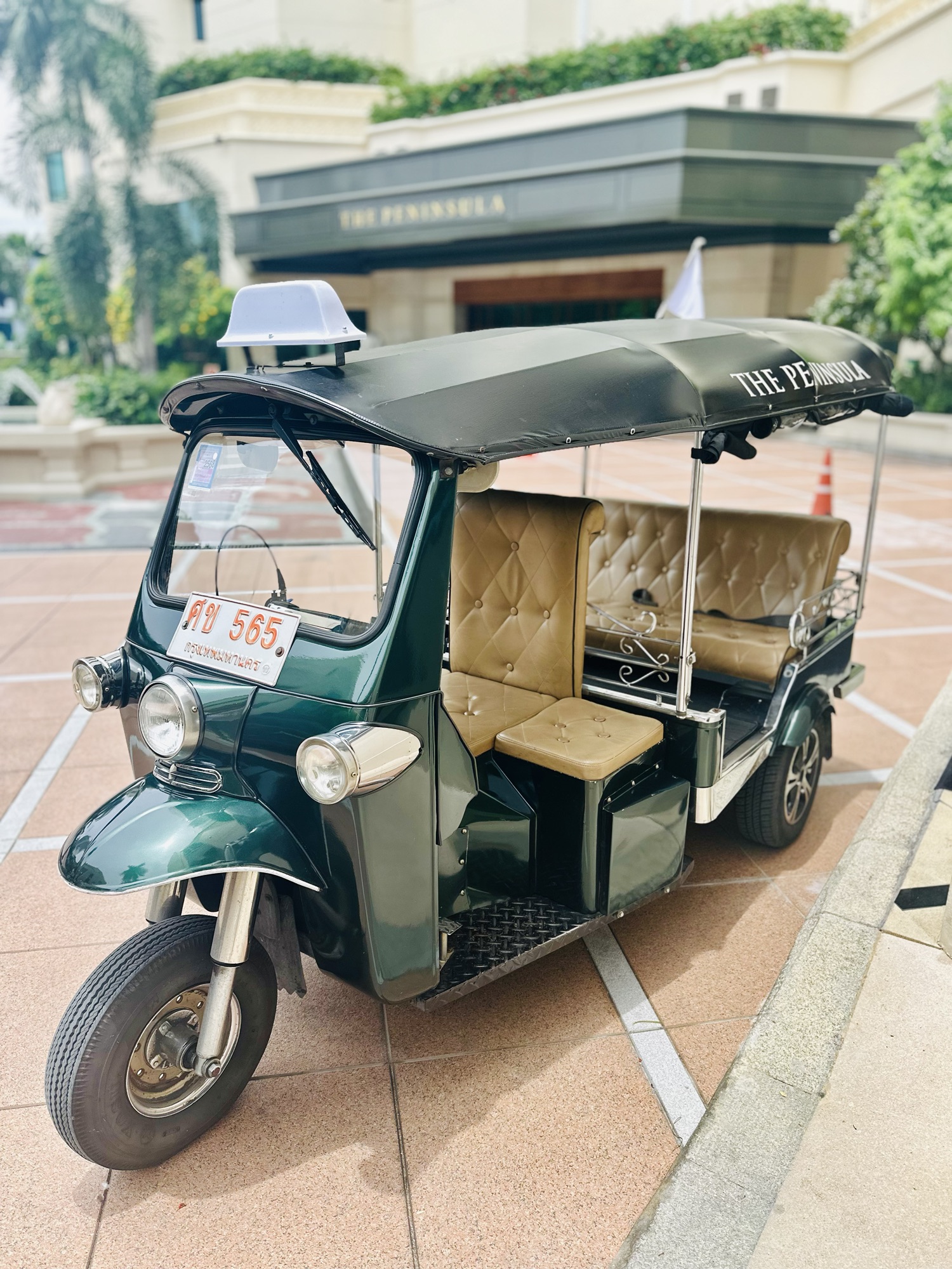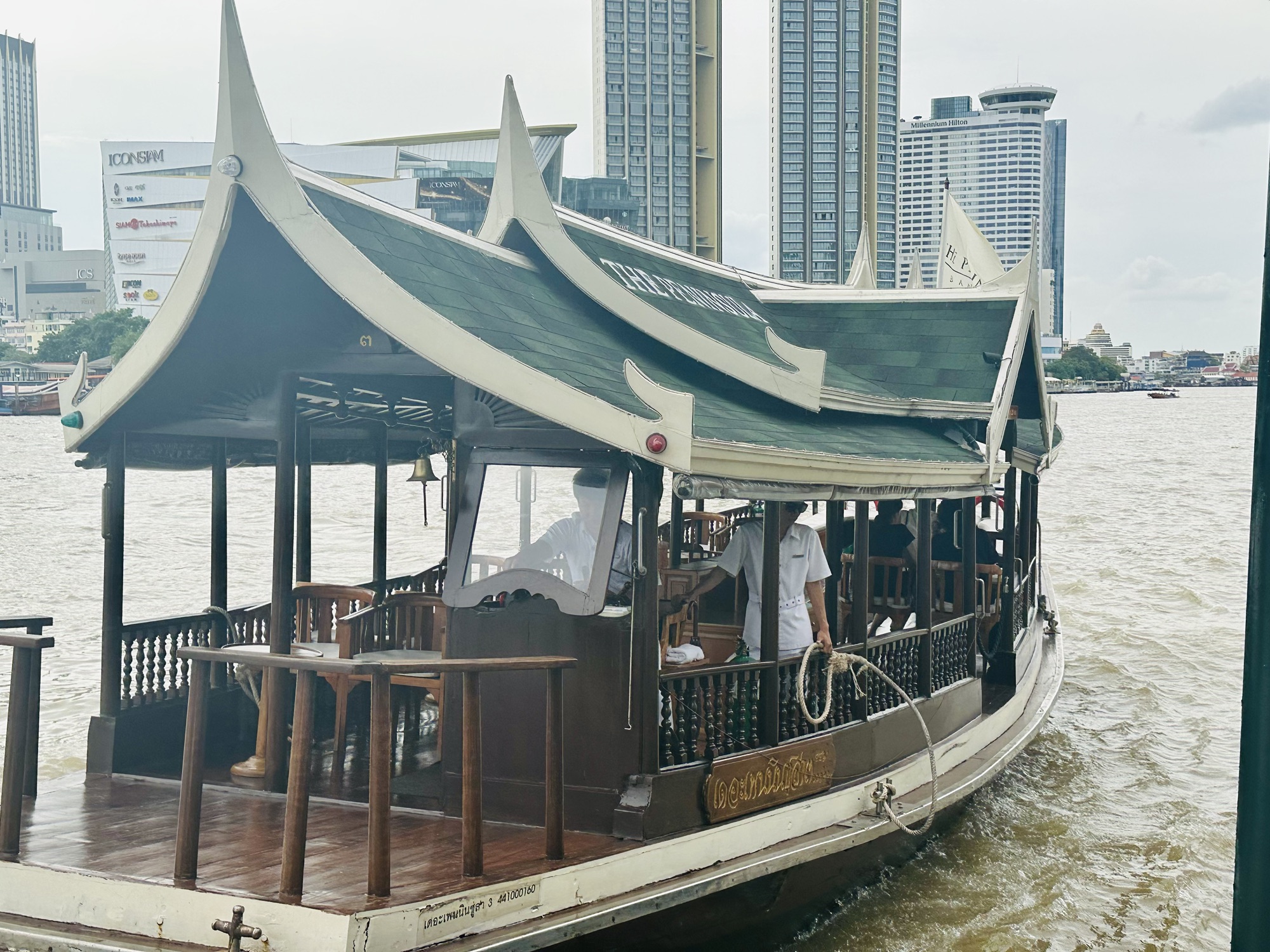 This brand of hotel is known for its impeccable service, world-class design, and over-the-top accommodations. We spent the day enjoying lunch at their riverside restaurant, browsing their shop where I snagged a Peninsula bear to add to my collection (I have NY and Tokyo), and then got to enjoy one of their most famous perks—The Peninsula Boat. The brand is known for its signature green color and typically has a fleet of Rolls Royce cars available for guest transport. Since this hotel is on the river, they have beautiful Thai boats, clad in wood with chairs and tables on board, topped with signature green roofing; at night, they also light up. The boats can take you across the river to their pier, which gets you into the Bang Rak District, or down the river to the IconSiam Mall, which is more than ‘just a mall’. I also have to mention another travel perk they provide—a stunning green tuk-tuk to take you to the mall.